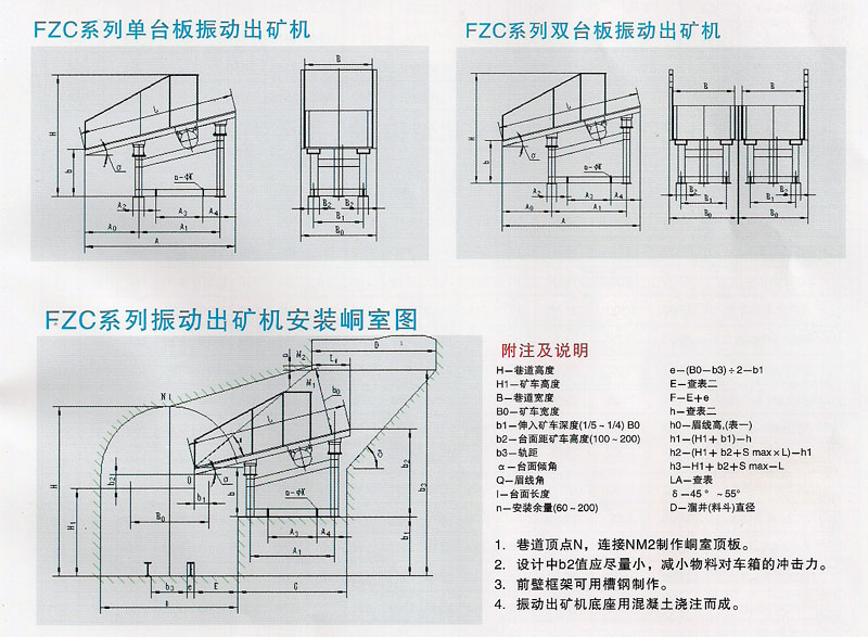 FZC系列振动出矿机是一种以振动电机为激振源的振动出矿设备,广泛用于冶金、化工、建材、煤炭等行业。该系列振动出矿机结构先进,具有节能高效、维护方便、可频繁起动等特点。可有效地防止跑矿、悬拱、卡矿等现象,适应于多尘及载矿量有较大波动,环境温度不大于40°C,空气相对湿度不大于90%的场合。