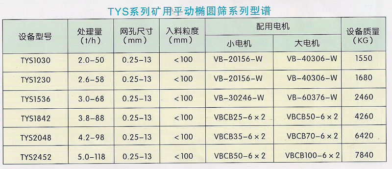 TYS系列矿用平动椭圆筛系由西南石油大学和钟祥710公海赌赌船官网欢迎您机电制造股份有限公司联合研制,由钟祥710公海赌赌船官网欢迎您机电制造股份有限公司独家制造的一种新型矿用振动筛,它可广泛用于水电、煤炭、冶金、矿山、建材、化工等行业对各种细物料进行分级和脱水、脱介。 TYS系列矿用平动椭圆筛利用“单质体双轴惯性振动筛力心理论”和“双轴不等质径积(矩)追随自同步和同步状态稳定性理论”,选用两组不等质径积比的振动电机做激振源,实现振动筛平动椭圆振动。